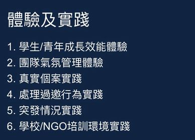 服務範疇:體驗式活動、生涯規劃、 領袖、溝通、個人突破、解難、團隊、理財心態、成長心理學等培訓